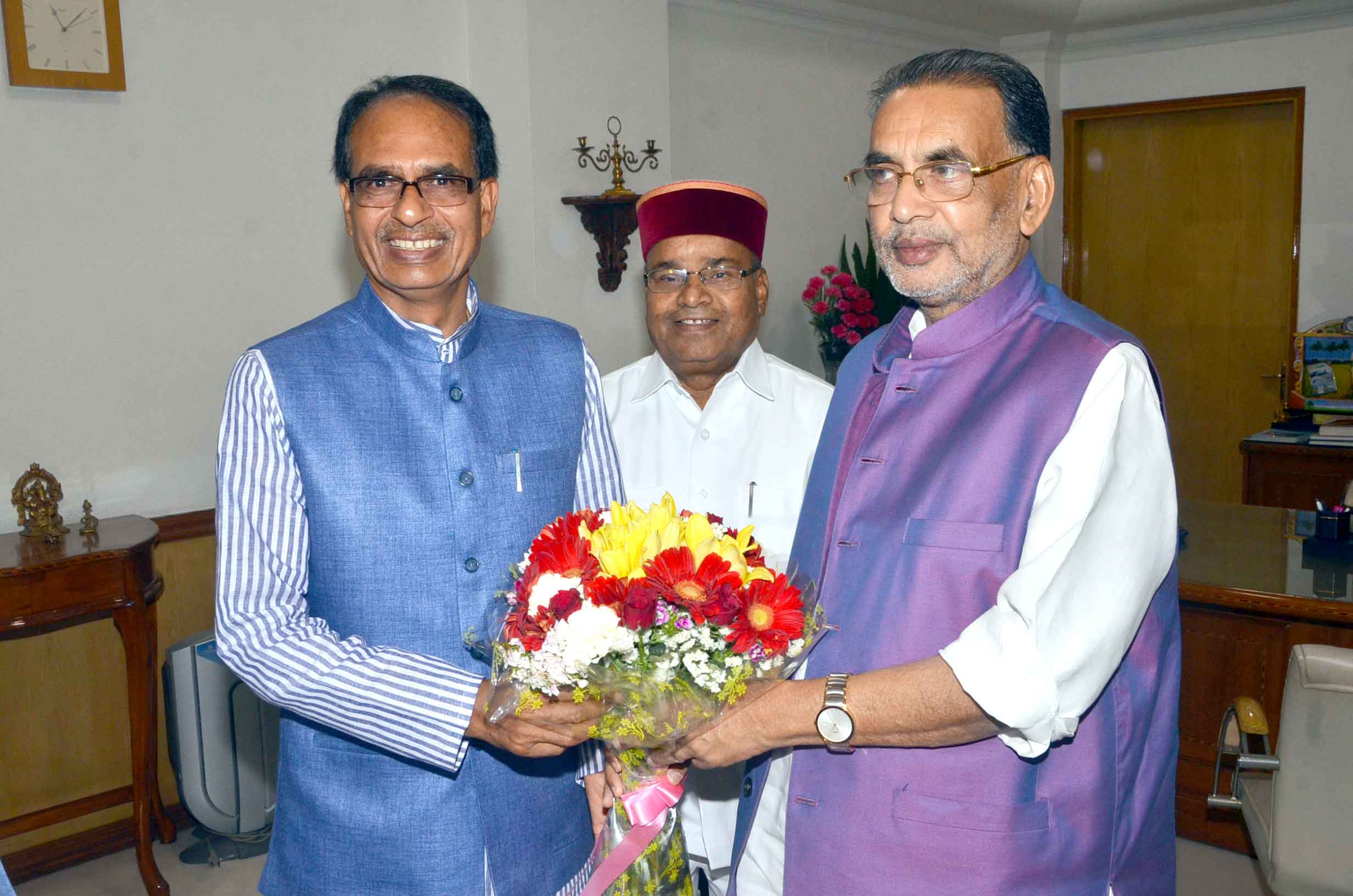 भोपाल। मुख्यमंत्री शिवराज सिंह चौहान ने नई दिल्ली में प्रदेश के दो केन्द्रीय मंत्री नरेन्द्र सिंह तोमर और थावरचंद गहलोत के साथ केन्द्रीय कृषि मंत्री राधा मोहन सिंह से मुलाकात कर कृषि संबंधी विभिन्न मुद्दों पर चर्चा की। जी.आई. बासमती के संबंध में केन्द्रीय मंत्री ने मुख्यमंत्री को आश्वासन दिया कि मध्यप्रदेश के किसानों के साथ अन्याय नहीं होने देंगे। कृषि मंत्रालय इस संबंध में अपना मत तथ्यों के अध्ययन के बाद केन्द्र सरकार को देगा।