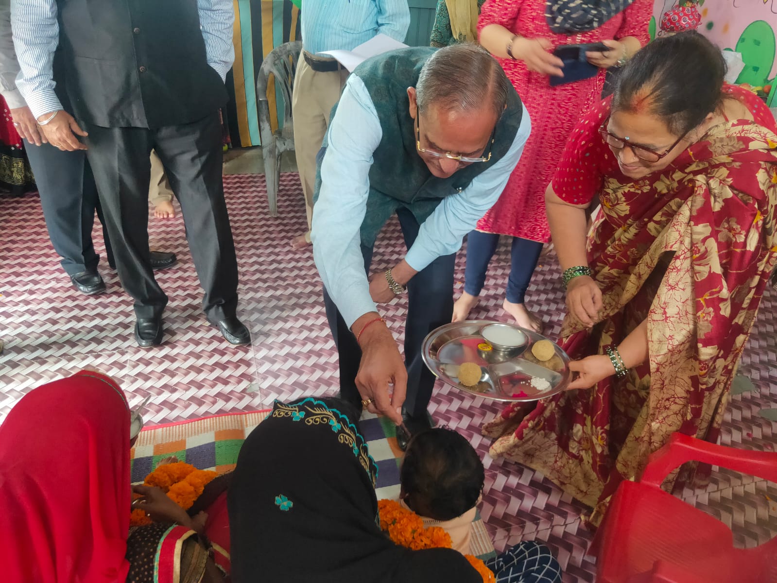 कार्यकर्ता से केंद्र के संचालन में आने वाली कठिनाईयों के बारे में जानकारी ली गयी। कार्यकर्ता ने बताया कि अधिकांशतः बच्चे प्राइवेट स्कूलों में जाने से आंगनवाडी केन्द्र में उपस्थिति कम होती है। आयोग अध्यक्ष न्यायमूर्ति श्री जैन द्वारा दो बालकों हिमांशु एवं रहीम का अन्नप्राशन कराया गया। उदिता कार्नर में उपलब्ध सैनेटरी पेड में से आंगनवाडी केंद्र में दर्ज 30 प्रतिशत महिलाएं/बालिकाएं पेड का इस्तेमाल करती हैं। एडॉप्ट एन आंगनवाडी के तहत अपर कलेक्टर श्री टेगोरे इस केंद्र को गोद लिया गया है। केंद्र में भोजन सुभाषचन्द्र बोस स्वयं सहायता समूह से आता है एवं भोजन केंद्र के सामने ही बनता है। आज के भोजन मीनू के अनुसार बच्चों को खीर-पूरी वितरित की गई। भोजन की गुणवत्ता अच्छी पाई गई। आयोग पदाधिकारियों के निरीक्षण के दौरान जिला कार्यक्रम अधिकारी, महिला एवं बाल विकास विभाग, उज्जैन एस.ए. सिद्धिकी, परियोजना अधिकारी उज्जैन (ग्रामीण) मनोज त्रिवेदी, सेक्टर पर्यवेक्षक नेहा त्रिवेदी, संरक्षण अधिकारी अमृता सोनी, ज्योति पंड्या, आरेशा कुरैशी व सपना वर्मा भी उपस्थित थे।
