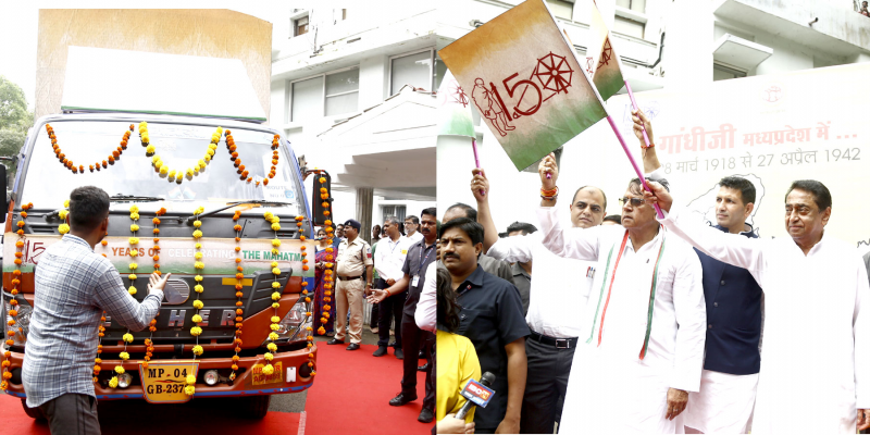 भोपाल : मुख्यमंत्री श्री कमल नाथ ने राष्ट्रपिता महात्मा गाँधी की 150वीं जयन्ती पर आज आर.सी.वी.पी. नरोन्हा प्रशासन अकादमी में जनसम्पर्क एवं संस्कृति विभाग के 'गाँधी दर्शन यात्रा रथ'' को हरी झण्डी दिखाकर रवाना किया। यह रथ यात्रा प्रदेश के सभी 52 जिलों में पहुँचकर जन-जन को विभिन्न संचार माध्यमों से गाँधी जी के विचारों से अवगत कराएगी।