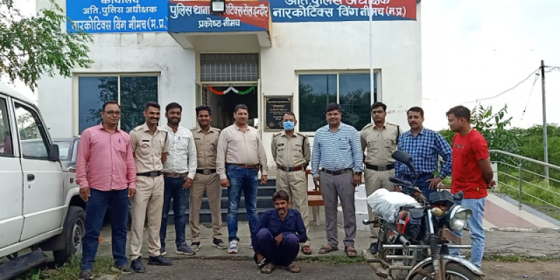 नीमच। मध्यप्रदेश नारकोटिक्स विंग प्रमुख "श्री डॉ.एस.डब्लु नकवी अतिरिक्त पुलिस महानिदेशक नारकोटिक्स मुख्यालय भोपाल के निर्देशन तथा "श्री जी.जी.पाण्डे" पुलिस महानिरीक्षक नारकोटिक्स विंग इंदौर एवं पुलिस अधीक्षक एम.एस. मण्डलोई के मार्गदर्शन एवं श्रीमती राजेश्वरी मोहनिया अतिरिक्त पुलिस अधीक्षक नारकोटिक्स प्रकोष्ठ नीमच के नेतृत्व मे नारकोटिक्स शाखा की नीमच ईकाई द्वारा कार्यवाही को अंजाम दिया गया जिसमें अवैध मादक पदार्थ अफीम को जप्त करते हुये आरोपीयो को गिरफ्तार किया गया।