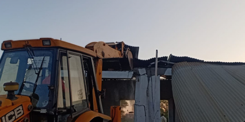 03 - जेसीबी से तोड़ने के बाद ढाबा पूरी तरह ढह गया।