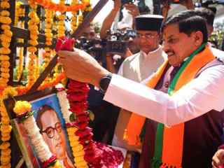 मुख्यमंत्री डॉ. मोहन यादव ने मंगलवार को बोर्ड ऑफिस स्थित बाबा साहेब डॉ. अम्बेडकर चौराहे पर भारत रत्न बाबा साहेब डॉ. भीमराव अम्बेडकर की 136वीं जयंती पर बाबा साहेब की प्रतिमा पर माल्यार्पण एवं पुष्पांजलि अर्पित कर श्रद्धांजलि दी। मुख्यमंत्री डॉ. यादव ने बाबा साहेब के व्यक्तित्व एवं कृतित्व पर प्रकाश डालते हुए कहा कि आधुनिक भारत के निर्माण में डॉ. अम्बेडकर का योगदान अविस्मरणीय है, अतुलनीय है। उन्होंने देश में समतामूलक समाज के निर्माण के लिए भारतीय संविधान की रचना कर इसमें सबके अधिकारों की सुरक्षा की। मुख्यमंत्री डॉ. यादव ने बाबा साहेब के सम्मान में पुष्पांजलि कार्यक्रम में मौजूद सबके समक्ष भारतीय संविधान की मूल उद्देश्यिका का वाचन कर 'डॉ. भीमराव अम्बेडकर अमर रहे' के नारे लगाए। मुख्यमंत्री डॉ. यादव ने कहा कि बाबा साहेब डॉ. अम्बेडकर आजीवन वंचितों, पीड़ितों, शोषितों और उपेक्षितों के सामाजिक, आर्थिक, शैक्षिक और राजनैतिक सशक्तिकरण की प्रखर आवाज थे। हमारी सरकार संविधान निर्माता बाबा साहेब डॉ. अम्बेडकर की समरसता और समानता की भावना को केन्द्र में रखकर लगातार काम कर रही है। बाबा साहेब ने हमें समानता का अधिकार दिलाया और अब हम प्रधानमंत्री श्री नरेन्द्र मोदी के नेतृत्व में "सबका साथ-सबका विकास, सबका विश्वास, सबका प्रयास" के पथ पर आगे बढ़ते हुए बाबा साहेब के स्वप्न को साकार कर रहे हैं। देश सबसे पहले है, हम सब सामाजिक समरसता के लिए मिल-जुलकर, एकजुट प्रयास करेंगे।