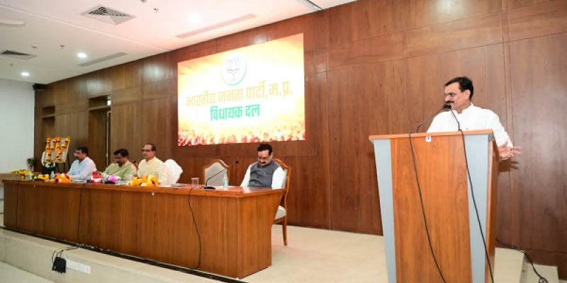 विधायक दल की बैठक में मुख्यमंत्री, प्रदेश प्रभारी, प्रदेश अध्यक्ष और संगठन महामंत्री ने विधायकों को दिया जीत का मंत्र