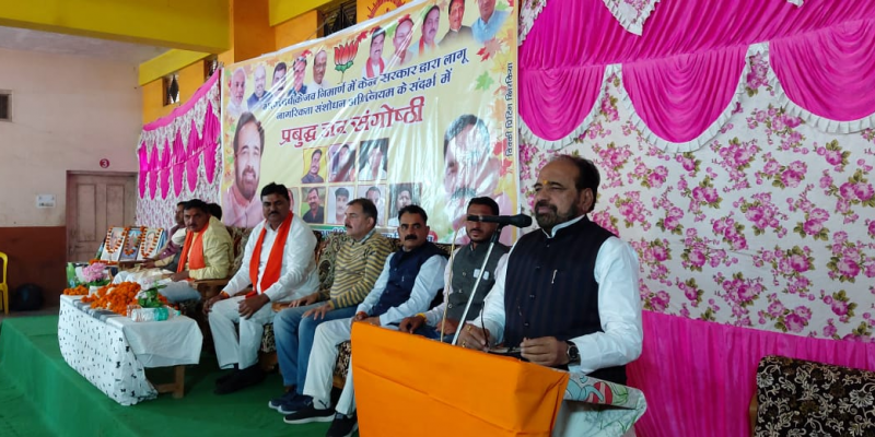 संगोष्ठी को संबोधित करते हुए हरदा विधायक श्री कमल पटेल ने सीएए को लेकर चल रहे जनजागरण अभियान में हर नागरिक की भागीदारी को सुनिश्चित करने की बात कही। इस अवसर पर जिलाध्यक्ष श्री अमरसिंह मीणा, श्री जगदीश सोलंकी, नगरपालिका अध्यक्ष श्री सुरेन्द्र जैन, श्री दीपक शर्मा, श्री रामनारायण राजपूत, श्री सुधीर सोनी सहित पार्टी कार्यकर्ता एवं प्रबुद्धजन मौजूद थे। होशंगाबाद में पूर्व विस अध्यक्ष व विधायक श्री सीताशरण शर्मा, श्री विजयपाल सिंह, श्री ठाकुरदास नागवंशी, जिलाध्यक्ष श्री हरिशंकर जायसवाल सहित पदाधिकारी एवं प्रबुद्धजन उपस्थित थे।