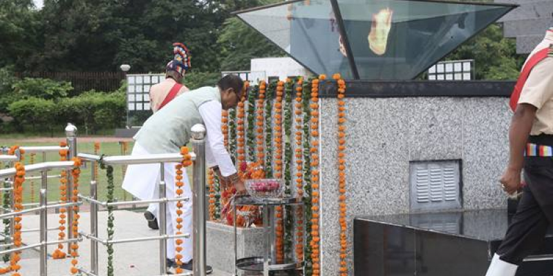 मुख्यमंत्री श्री चौहान ने शौर्य स्मारक स्थित शौर्य स्तंभ पर किया पुष्प-चक्र अर्पित