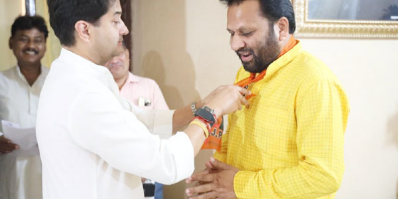केंद्रीय मंत्री श्री ज्योतिरादित्य सिंधिया के समक्ष कांग्रेस नेता श्याम रतन तिवारी भाजपा में शामिल