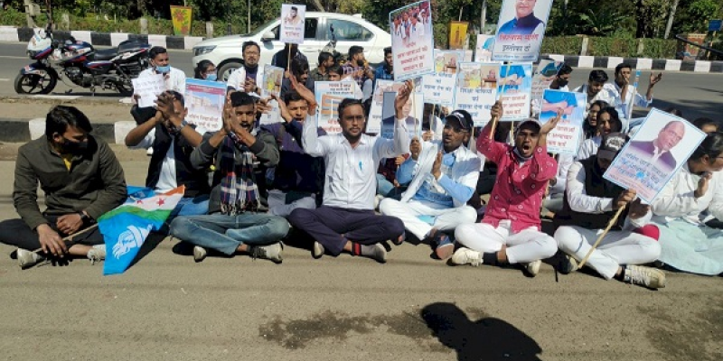 मंत्री विश्वास सारंग के बंगले के बाहर धरने पर बैठे एनएसयूआई नेता रवि परमार को गिरफ्तार कर भेजा जेल