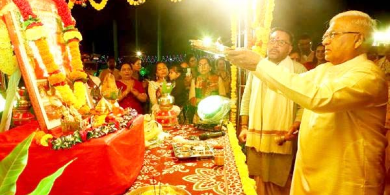 \राज्यपाल श्री मंगुभाई पटेल की गरिमामय उपस्थिति में राजभवन में नवरात्रि पर्व का शनिवार को आयोजन किया गया। राज्यपाल श्री पटेल ने महोत्सव का शुभारंभ माँ दुर्गा की आरती से किया। उन्होंने समस्त प्रदेशवासियों को नवरात्रि की शुभकामनाएँ दीं। प्रदेश की सुख-समृद्धि की कामना की। राजभवन में गरबा महोत्सव का आयोजन भी किया गया।