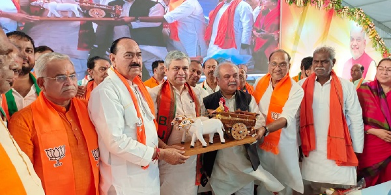 वरिष्ठ नेताओं ने रथ को किया रवाना, जनता का आशीर्वाद मांगने निकले केन्द्रीय मंत्री नरेन्द्र सिंह तोमर